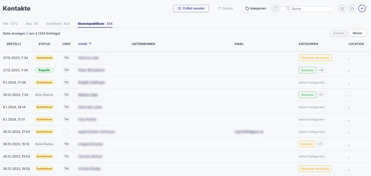 Genau hier ist Ticketing/Marketing-Software entscheidend: Stammpublikum muss als Segment verfügbar sein (z. B. wiederkehrende Käufer:innen, Häufigkeit, Umsatz, zuletzt gekauft, bevorzugte Kategorien).